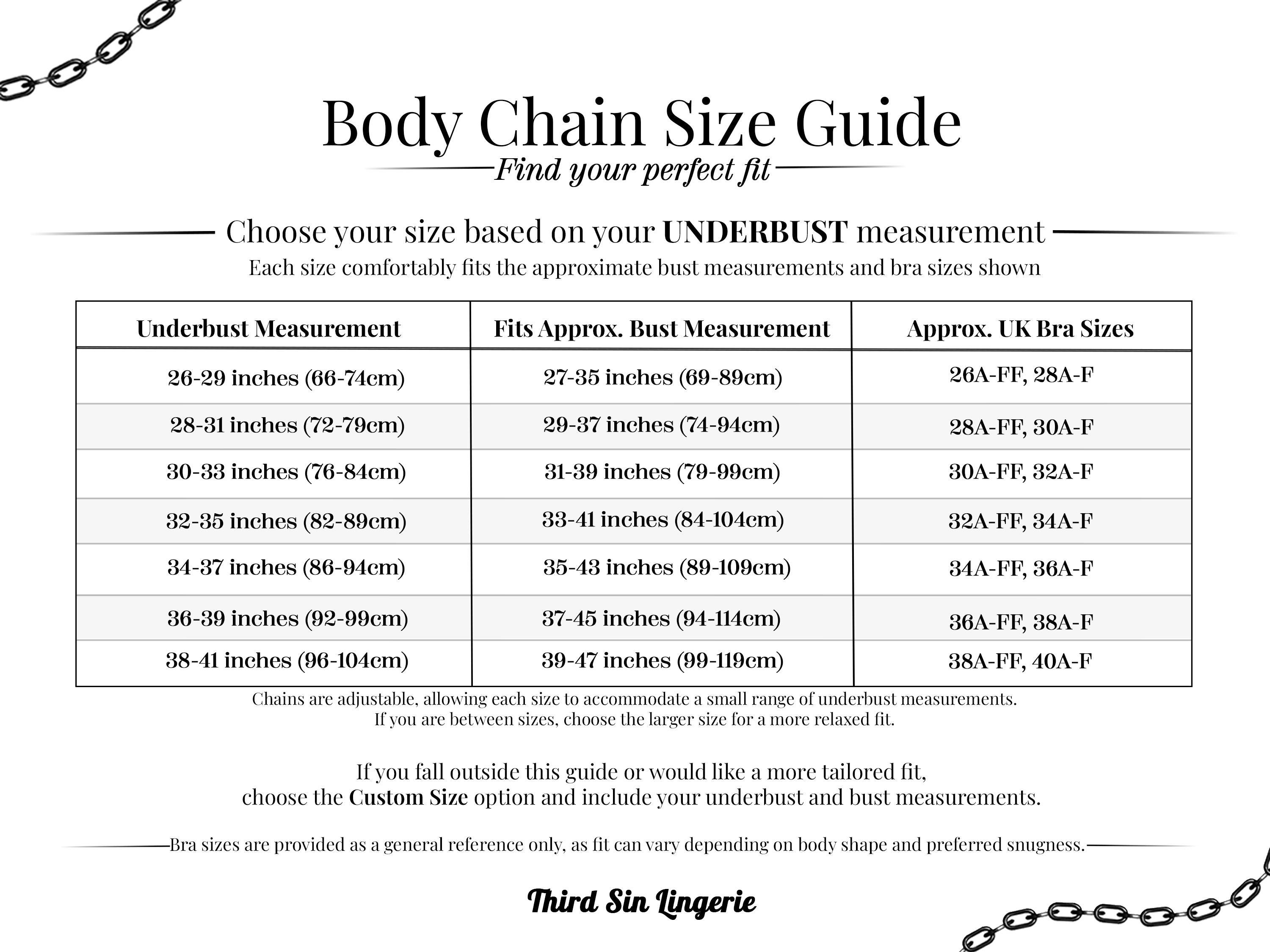 My harnesses are sized using UK bra measurements. If you need help converting your size to UK, or you’re unsure which size to choose, please message me before ordering.
