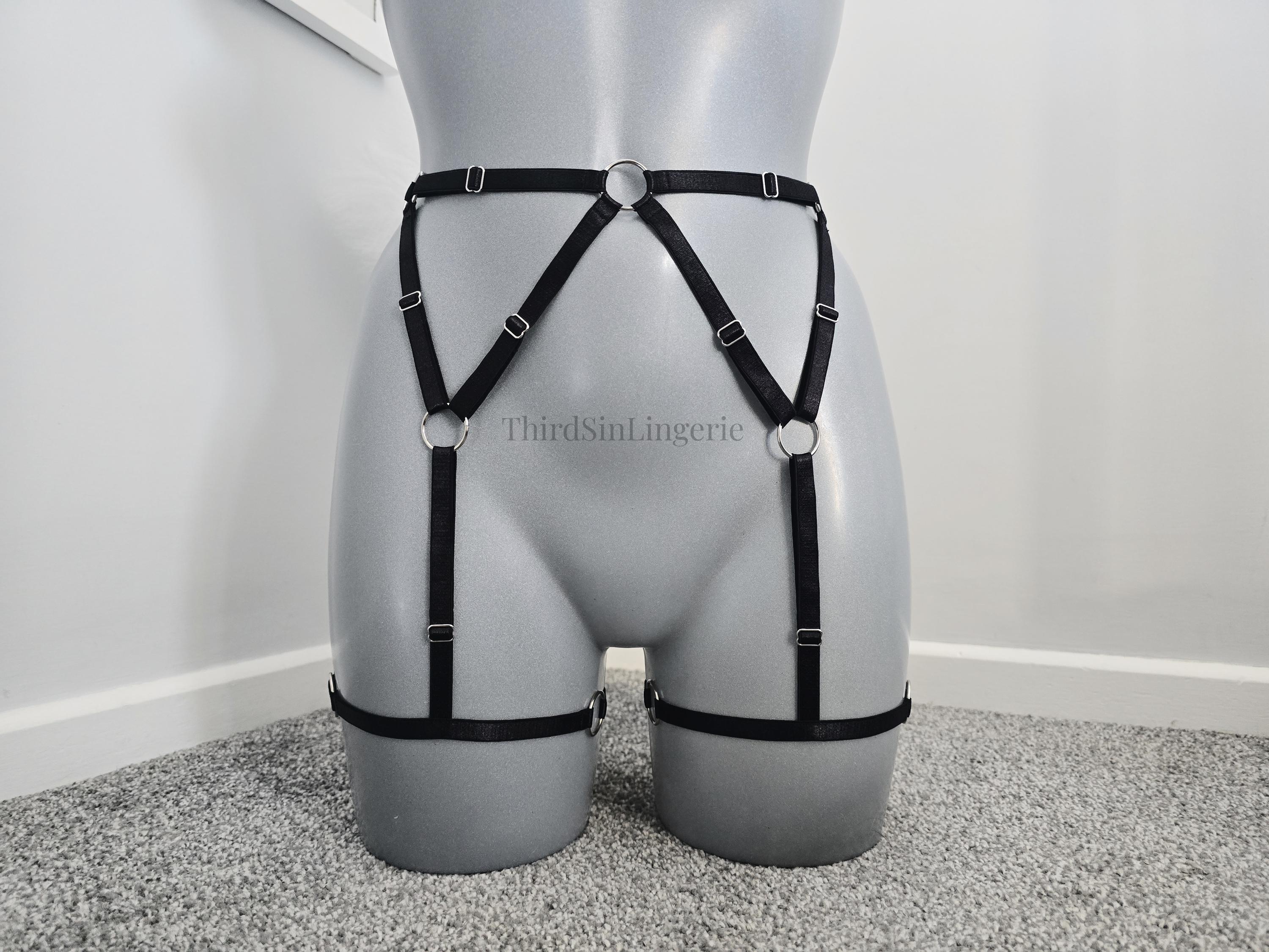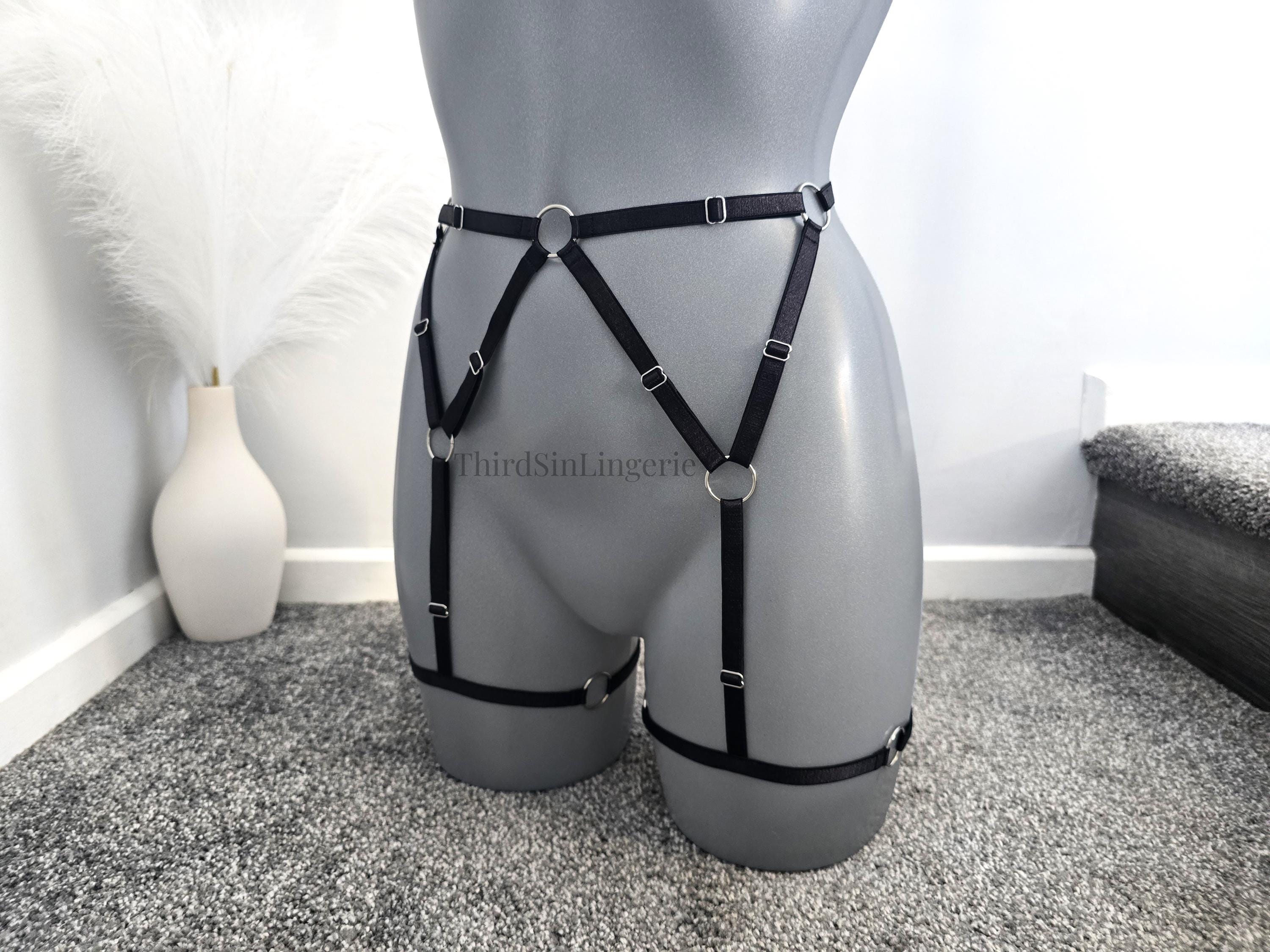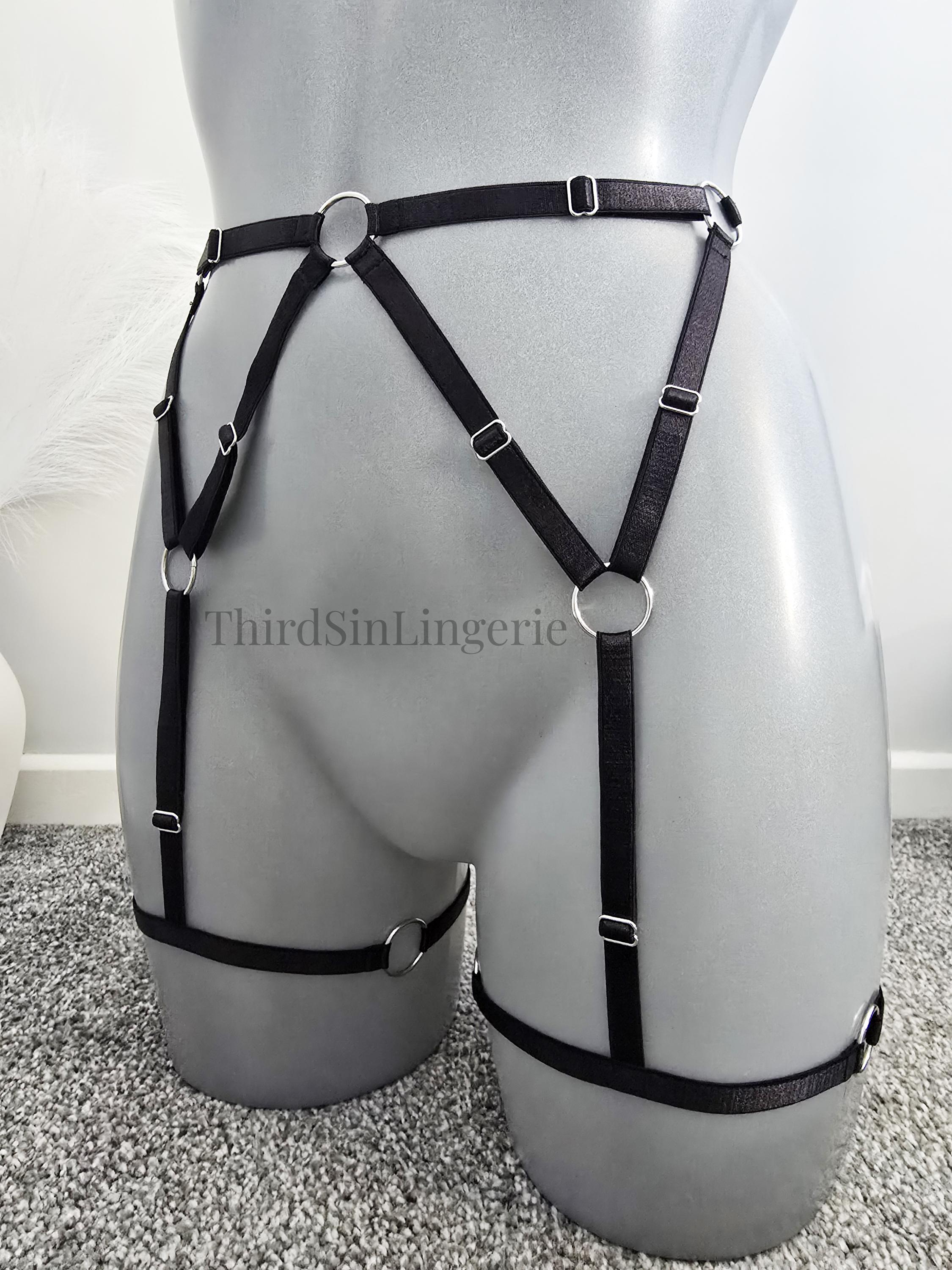 KARMA Adjustable Garter Belt, Strappy Harness Style Suspender Belt, Satin Lingerie for Women, Plus Size Inclusive