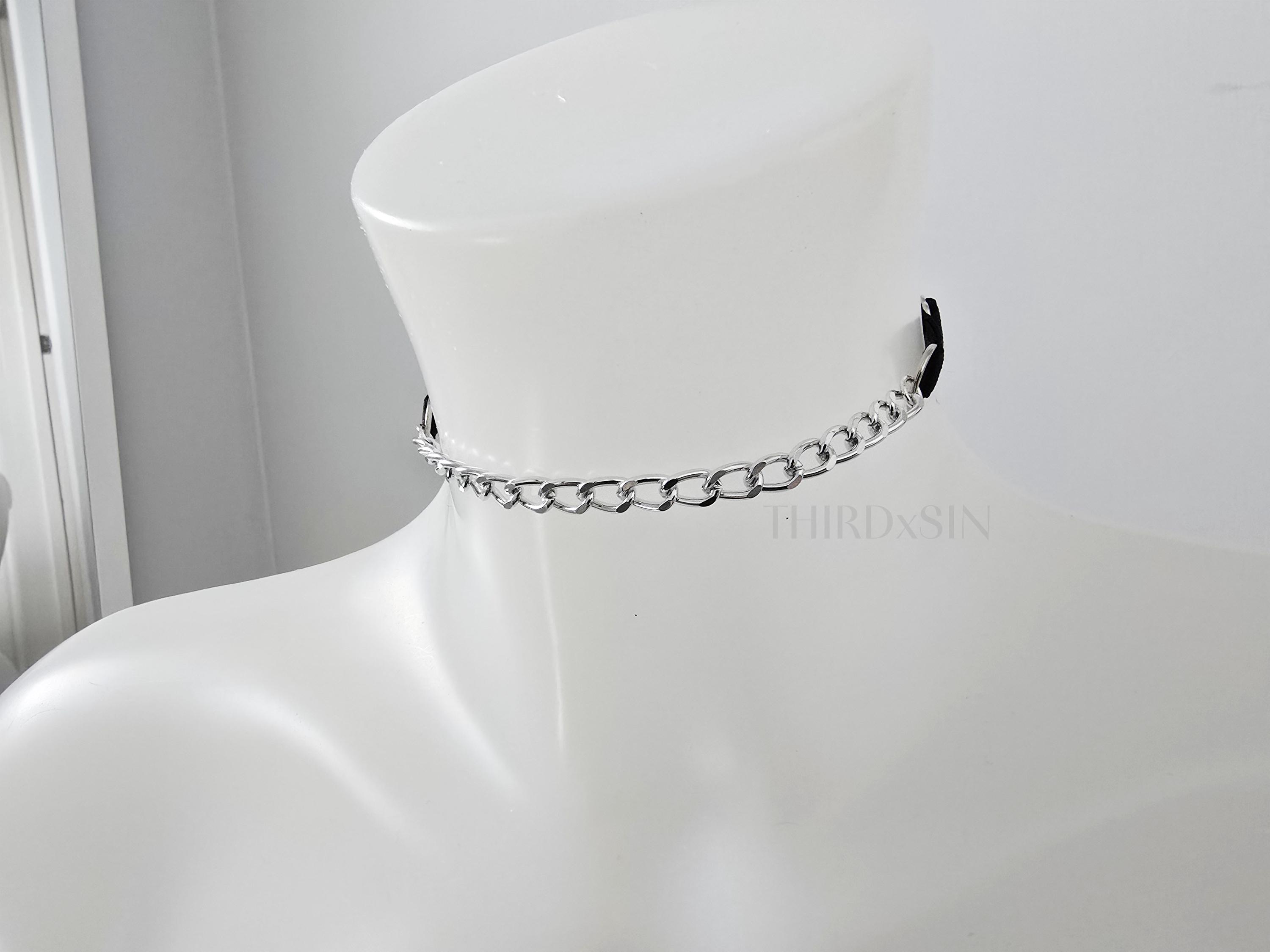 LORELEI Choker with Chain, Adjustable Satin Jewellery with Magnetic Clasp, Plus Size Inclusive