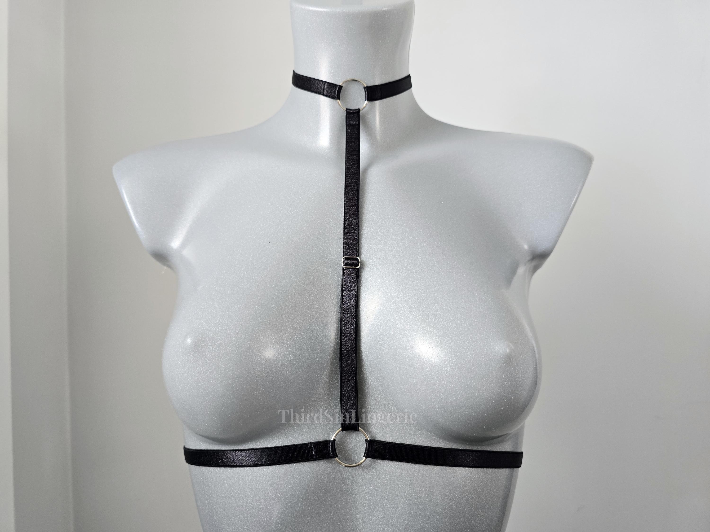 LOVER Adjustable Harness Bra with Choker, Satin Lingerie Body Harness, Layering Festival Outfit