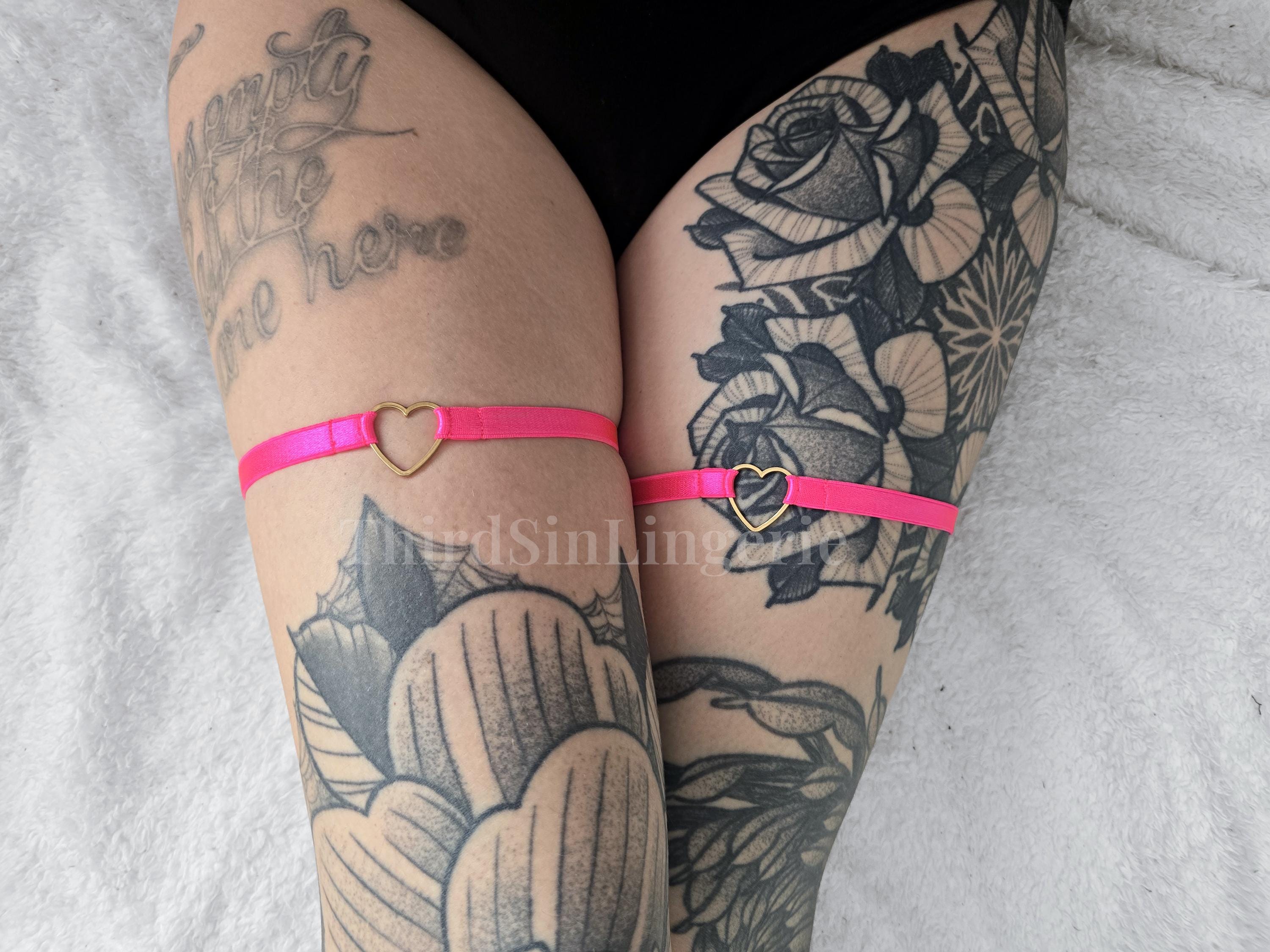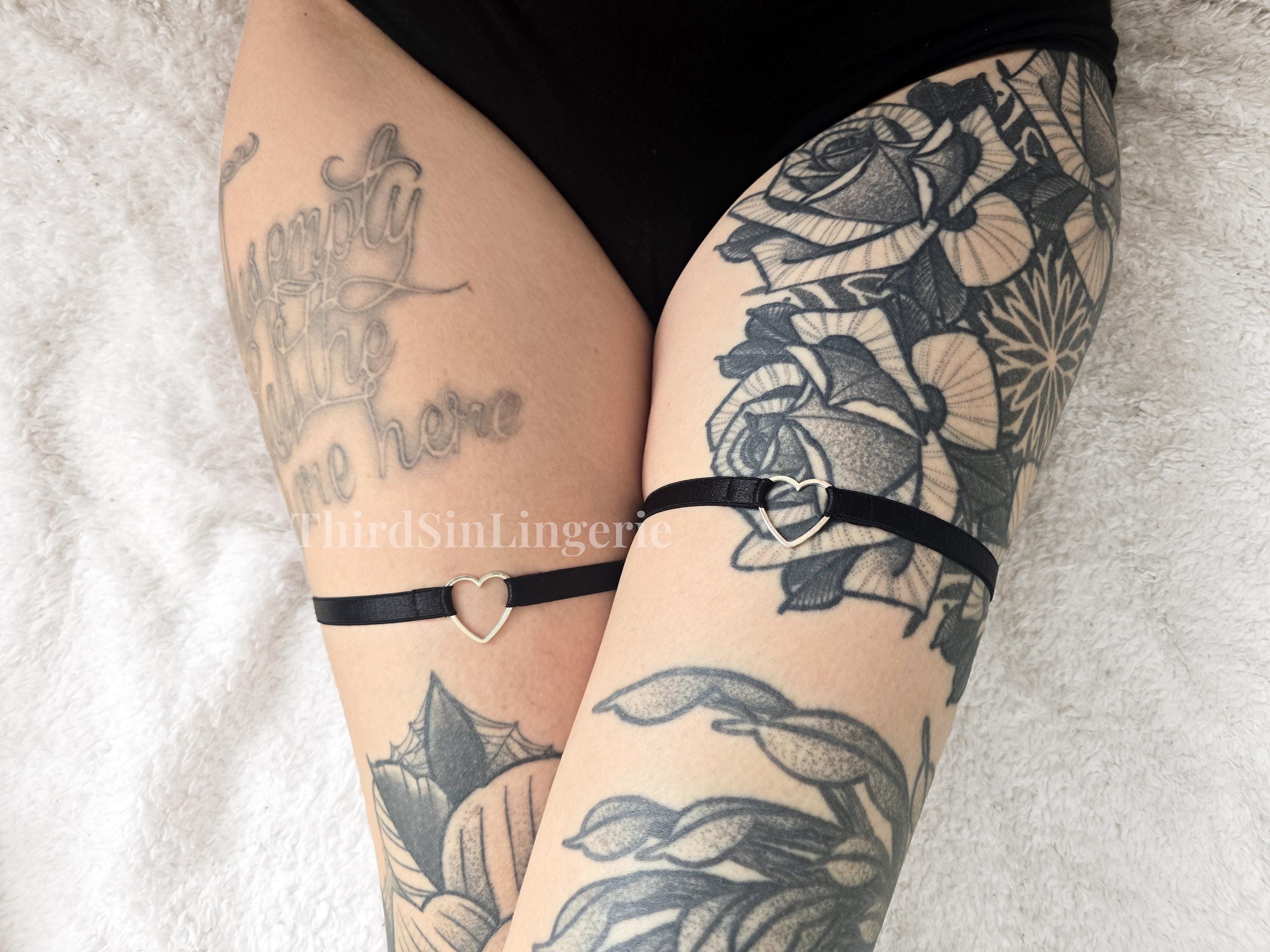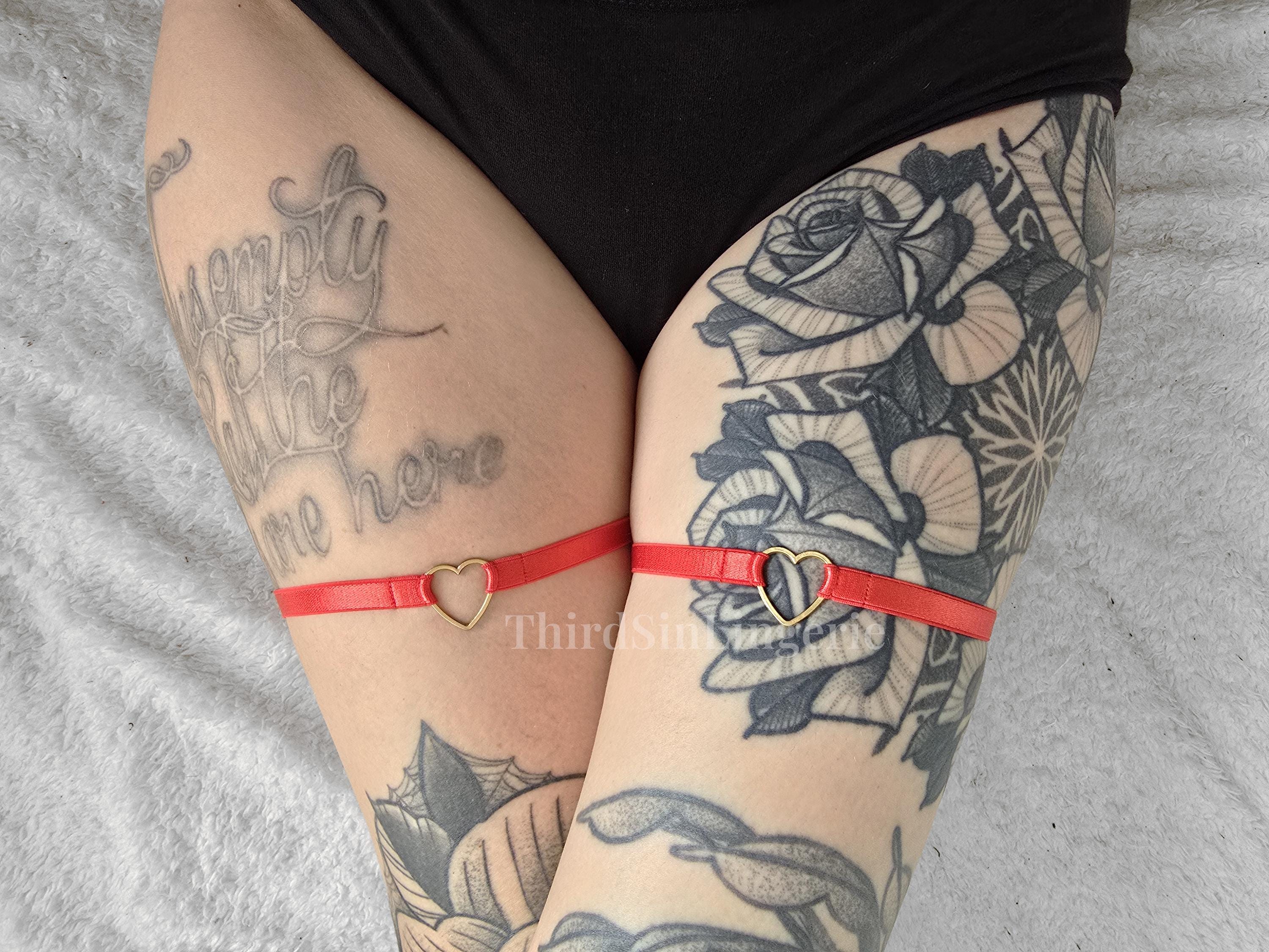 HEART Adjustable Thigh Garter, Satin Leg Harness, Strappy Lingerie Accessory for Women