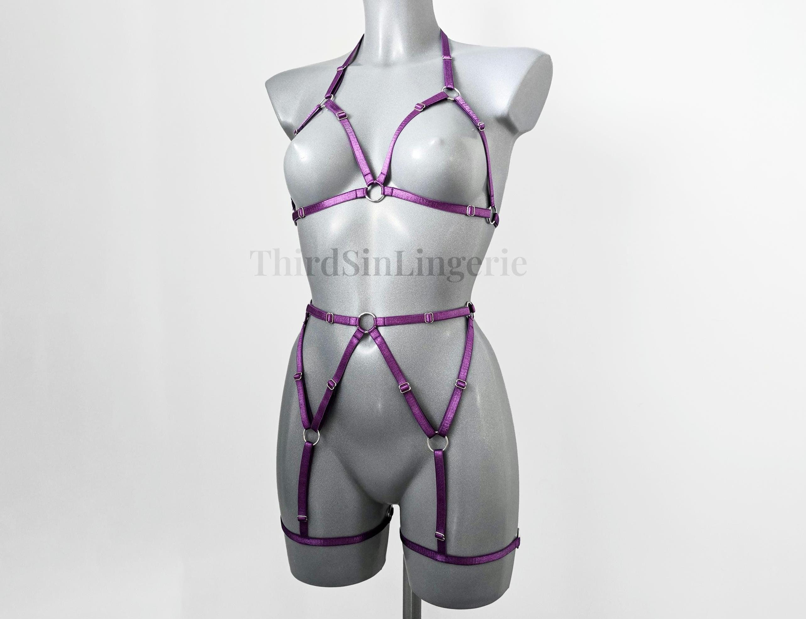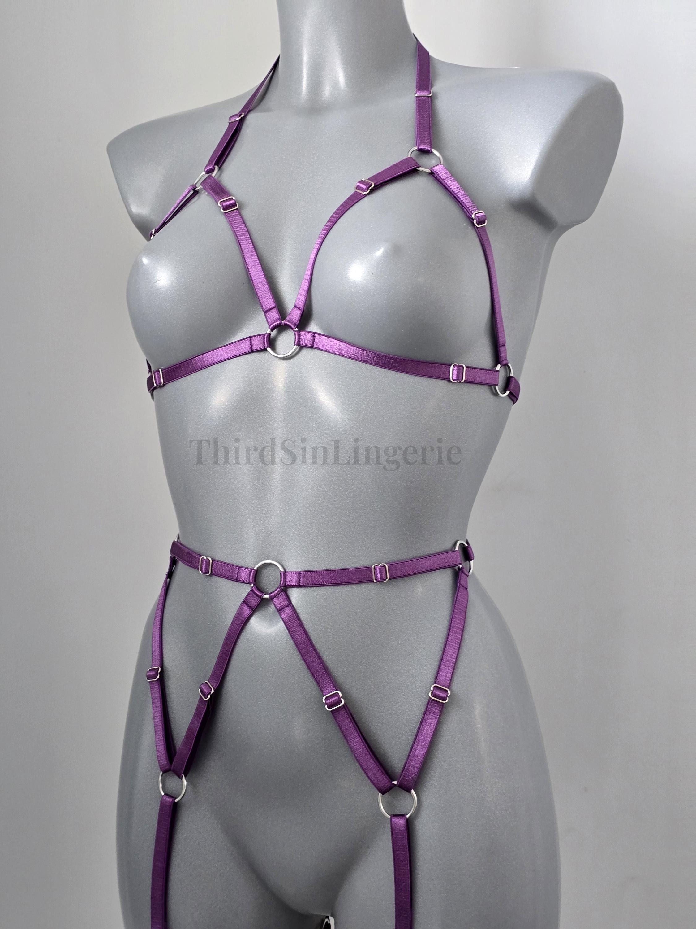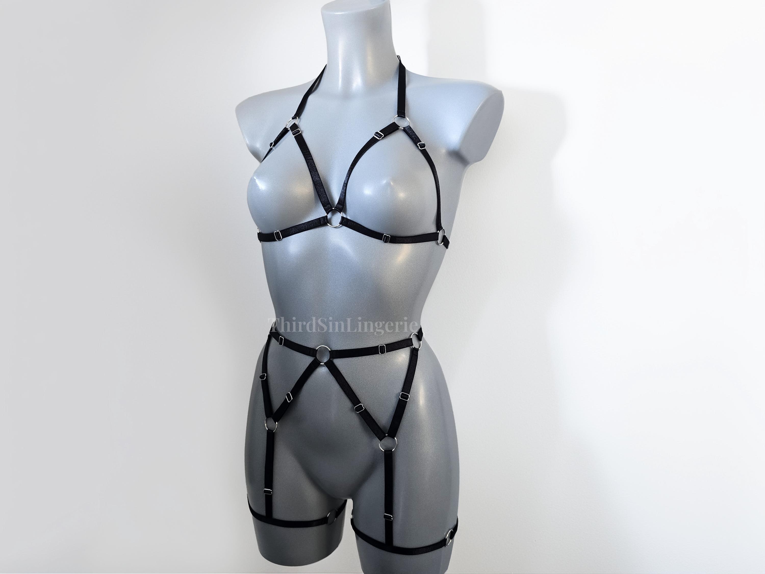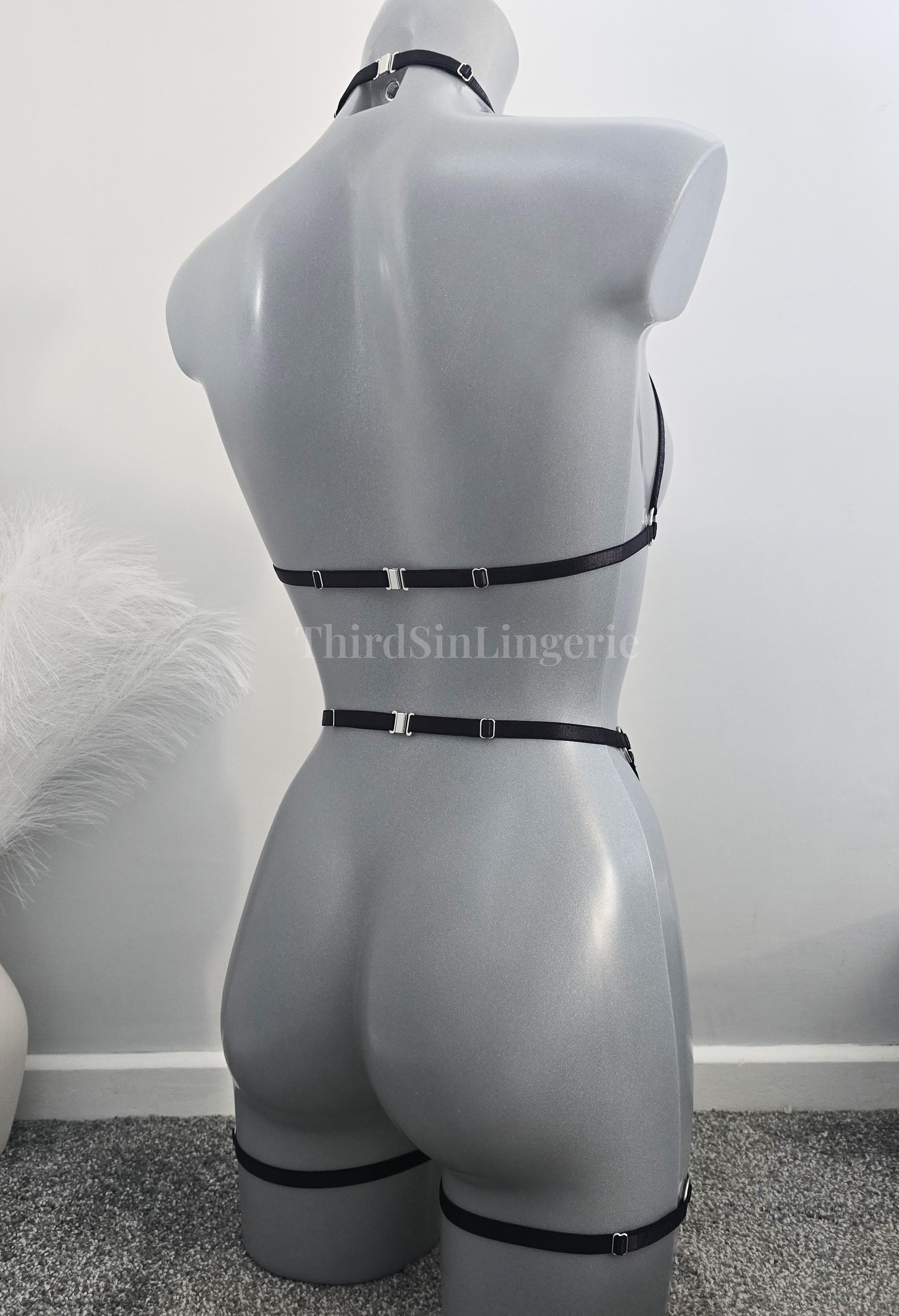 KARMA Strappy Harness Set, Cupless Bra and Garter Belt, Body Harness Lingerie, Festival Outfit
