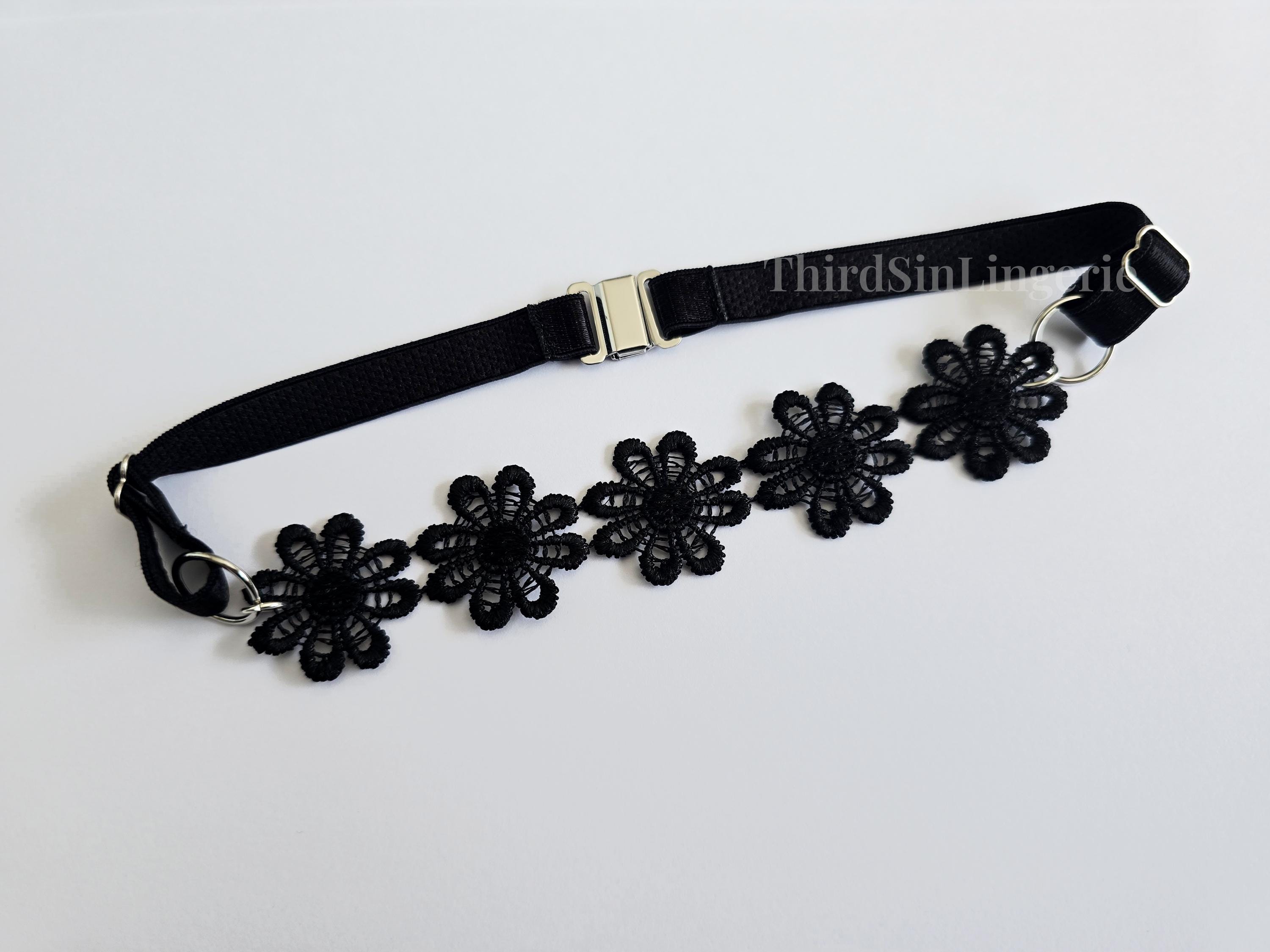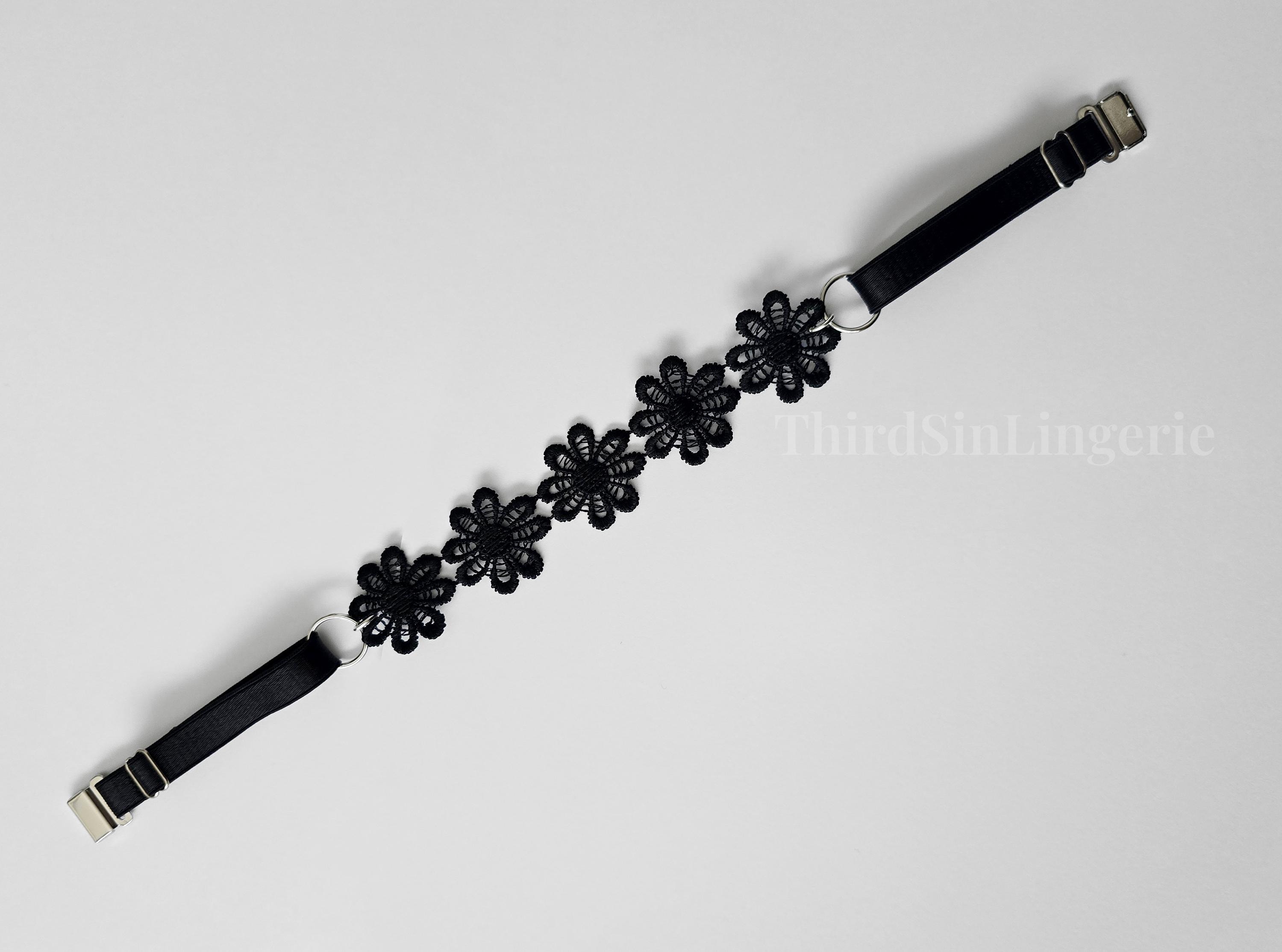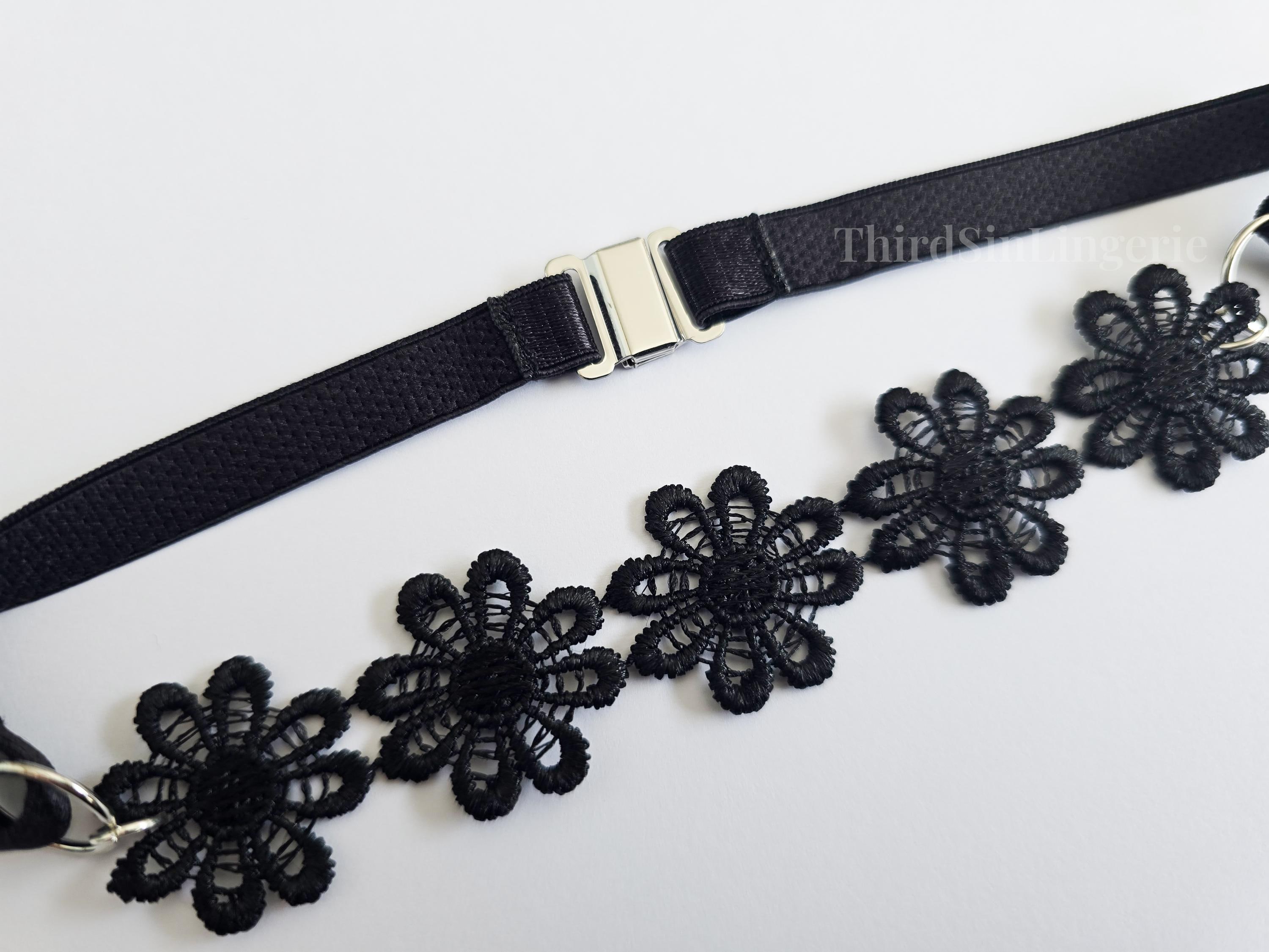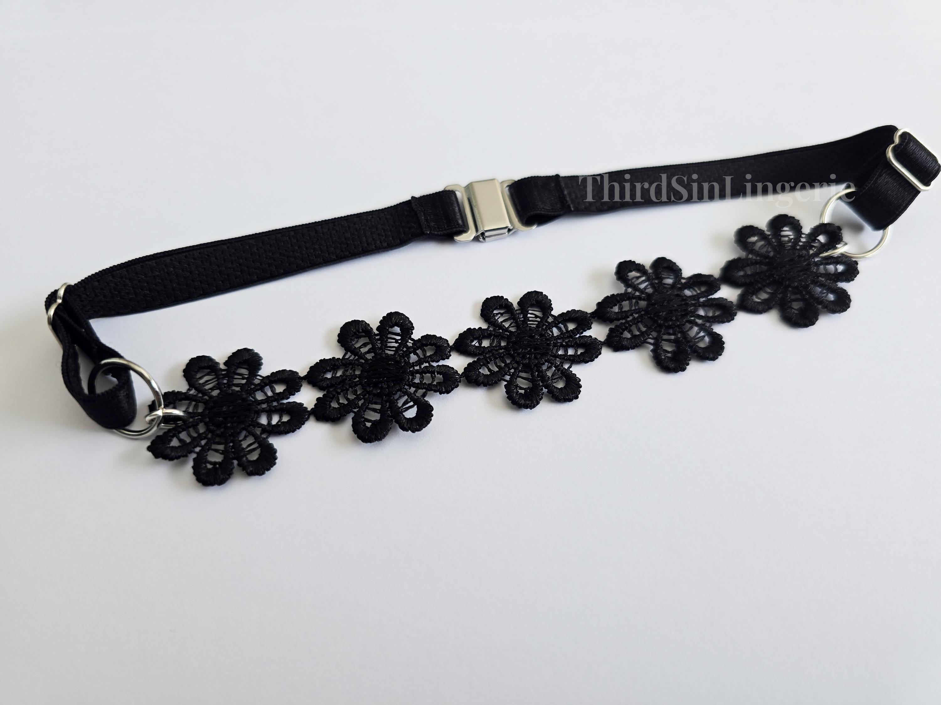 Add a bold finishing touch to your look with this black floral lace choker, featuring delicate daisy appliqué and sleek strap detailing Handmade to order with adjustable sliders and a magnetic clasp for a secure, personalised fit. Designed to sit close to the neck, it can be worn alone or layered.
