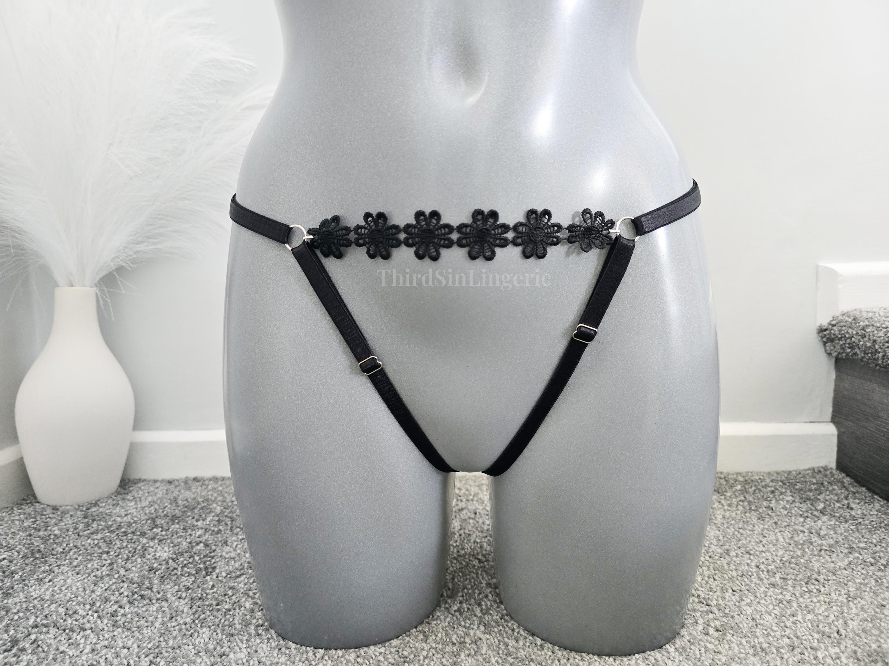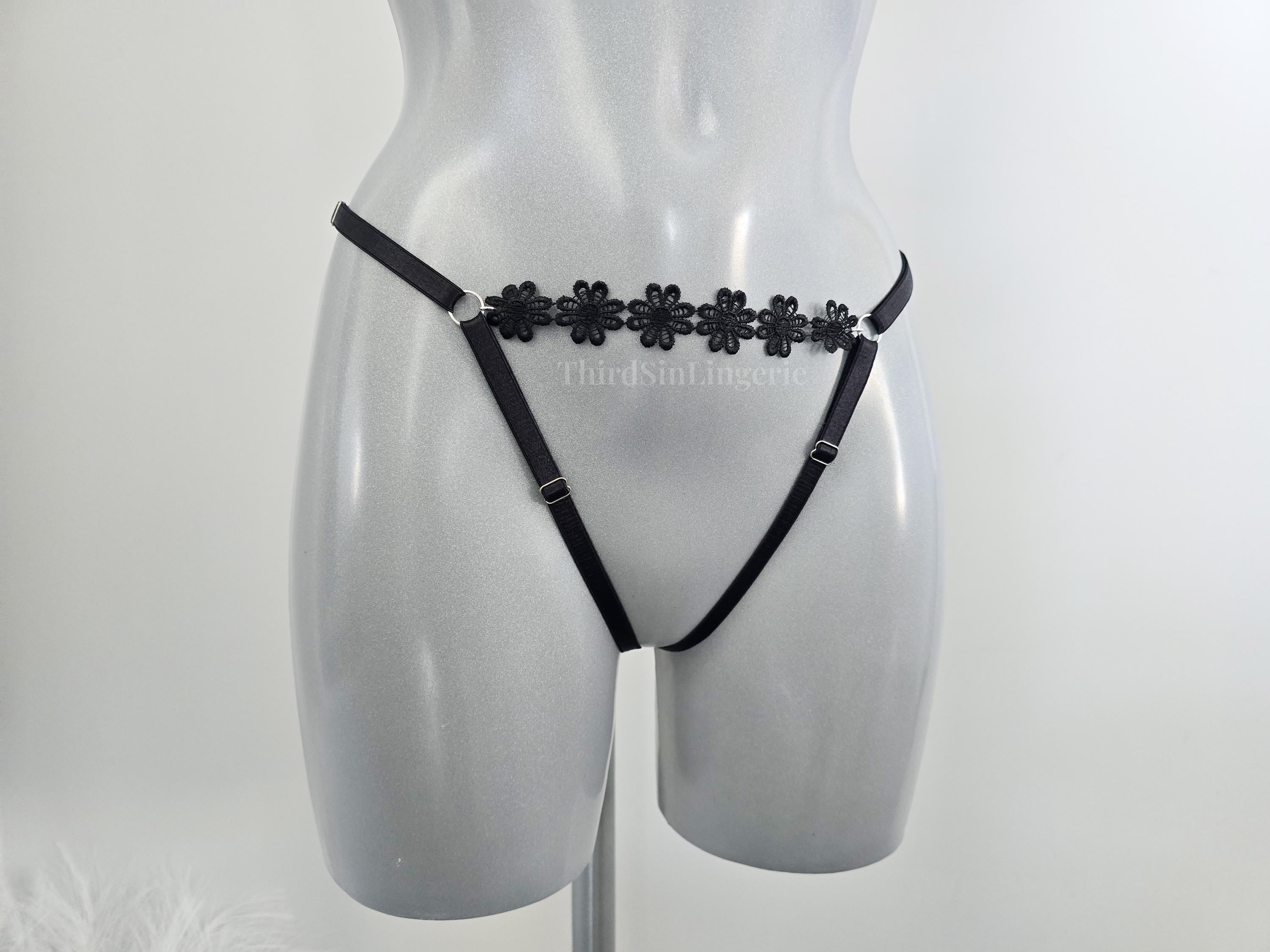 DAISY Floral Lace Harness Bottom, Strappy Adjustable Body Harness, Gothic Lingerie, Festival Rave Wear